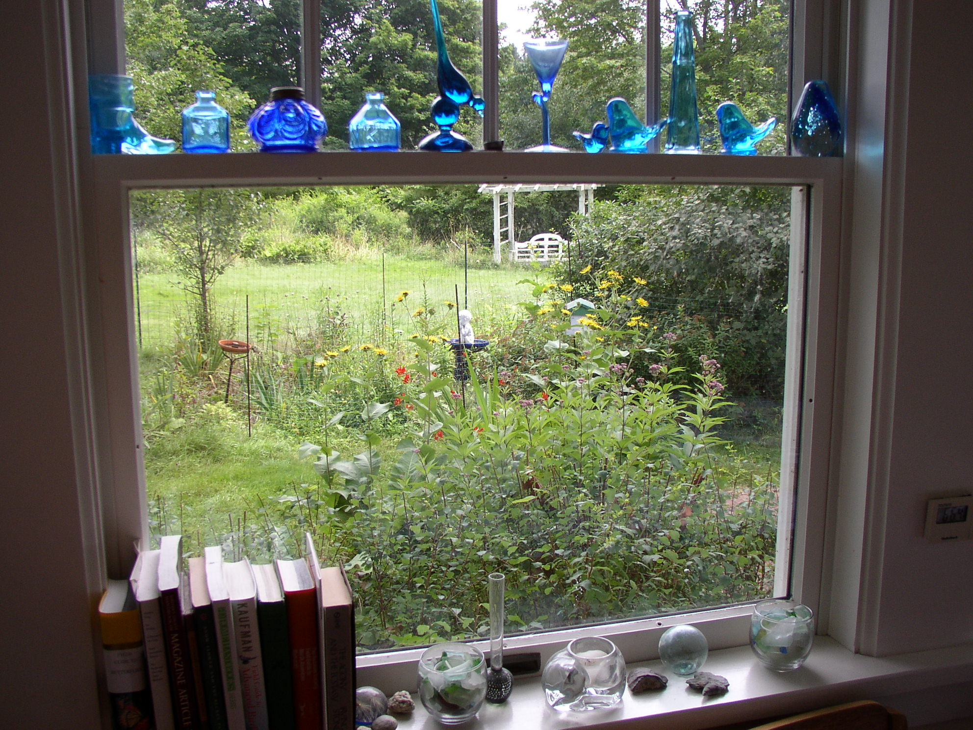 1. You are so right about the fear involved in putting your work out there, and the “nothing” comment really struck home. Loved your post, and the view from your window. I especially love all your blue glass adorning said window. I collect depression glass, and blue is my favorite!