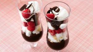 Hi Everyone! This dessert is easy, but elegant. Chocolate pudding made the day before is layered with marinated raspberries and whipped cream. This recipe serves one, so repeat the process for each guest.